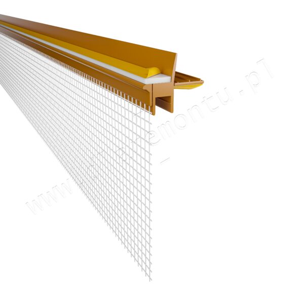 Listwa PCV przyokienna zewnętrzna 6/3mm (APU) z siatką 145g i uszczelką ZŁOTY DĄB RAL 8001